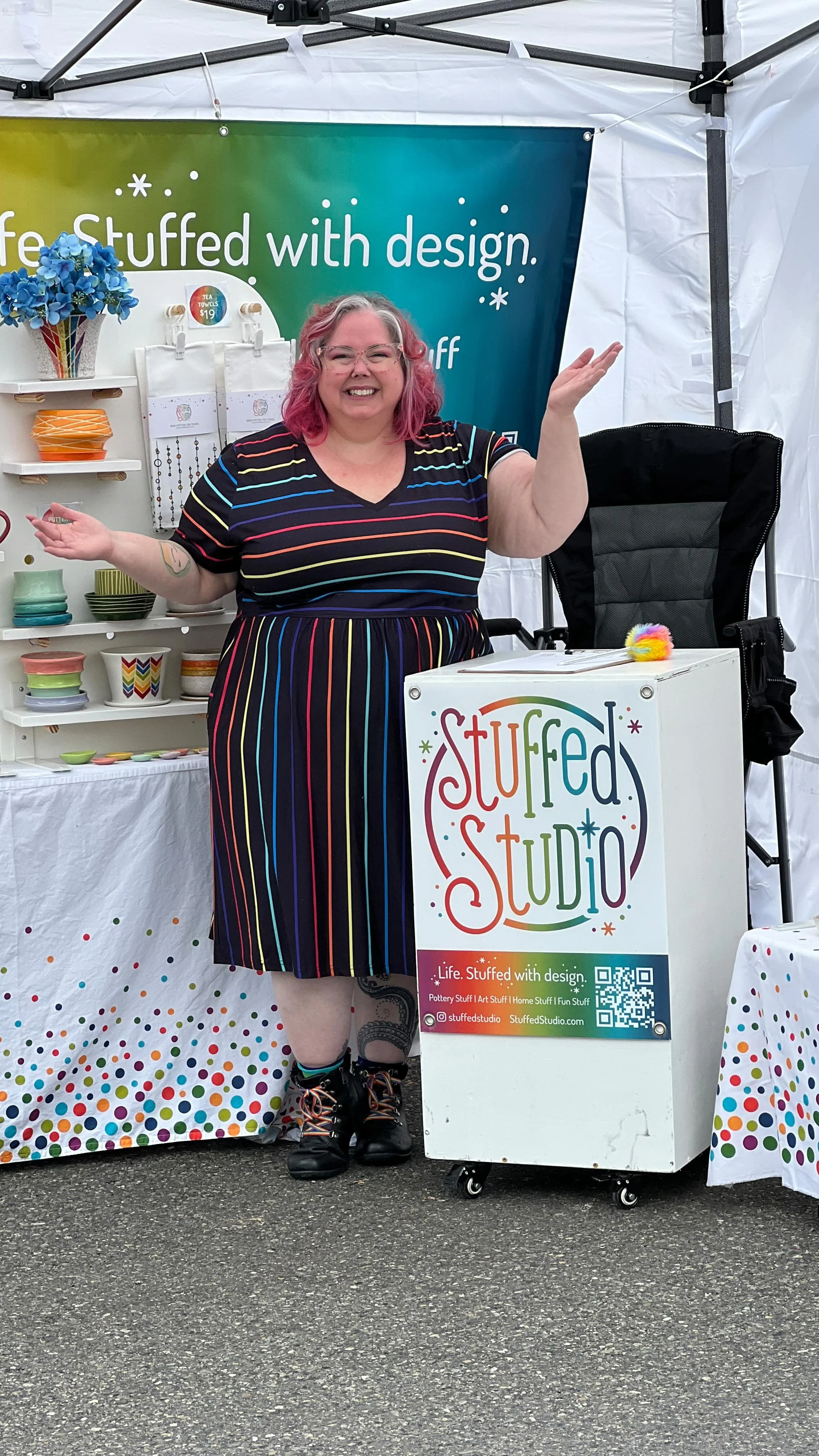 Stuffed Studio is stuffed with one-of-a-kind pieces, such as pottery and custom watercolor or gouache portraits; and fun items like prints, stickers, and home goods. I bring nearly 30 years professional experience as a designer and a lifetime of artistry to you.