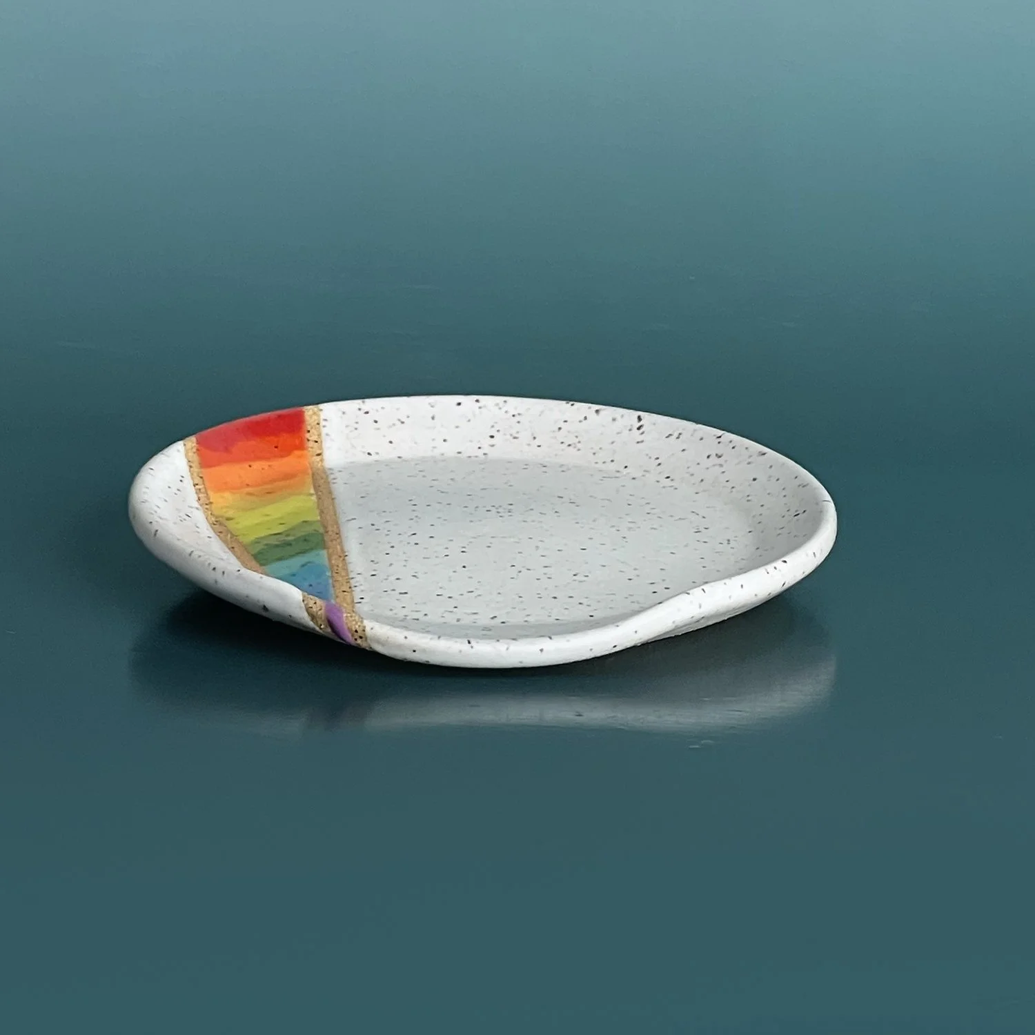 Speckled Retro Collection - Handmade Ceramic Spoon Rest: Green